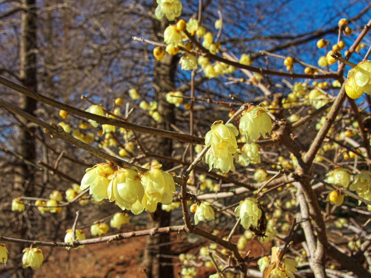 「蝋梅林」(素心蝋梅) ロウバイ科 令和5年 1月27日 くもり 都立水元公園 東京都葛飾区水元公園 レンズ:42mm相当 マクロモード 露 出:F 2.5 1/500秒 ISO 80 フラッシュ M 1/16 |
