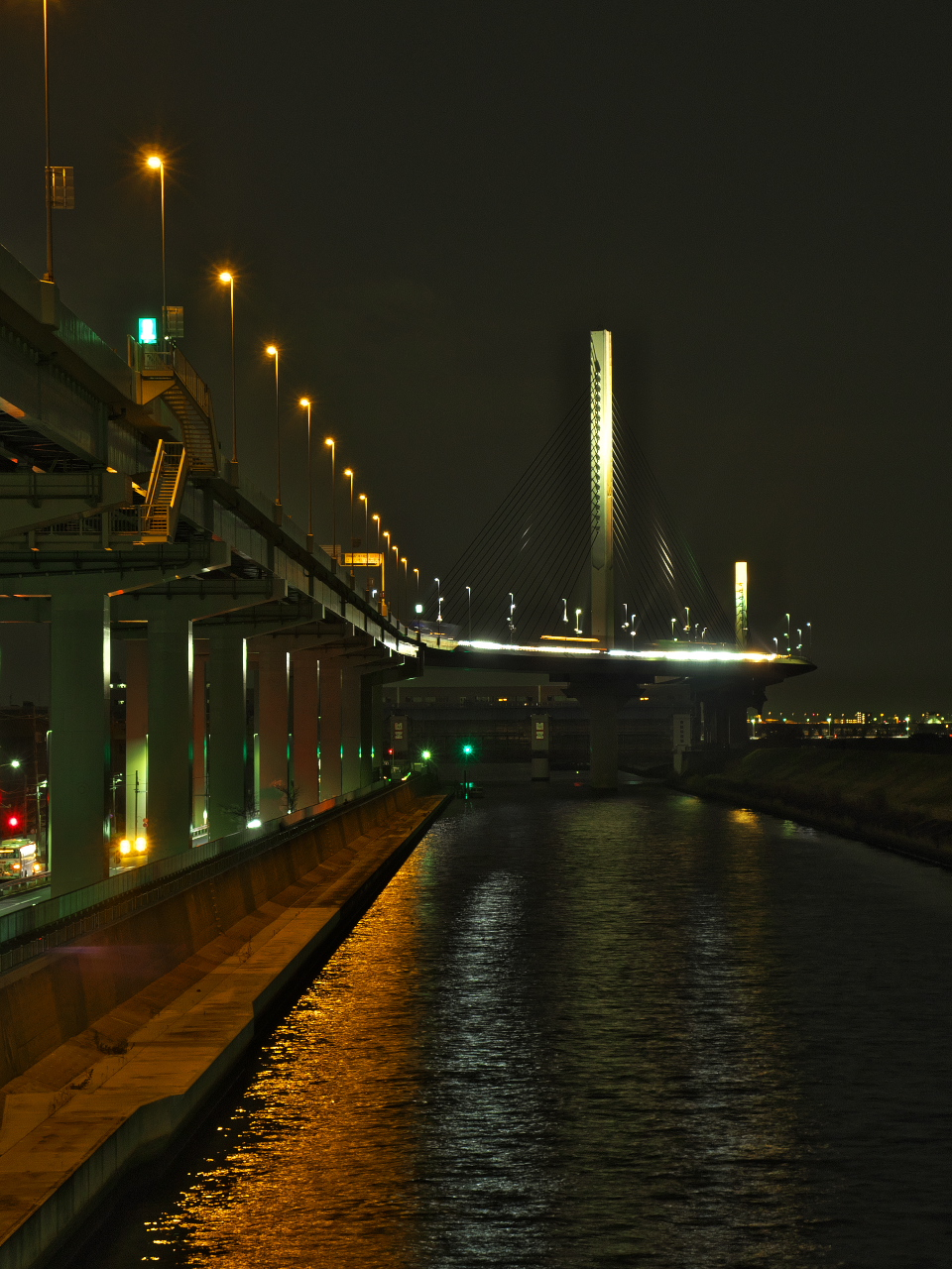 「首都高速環状線」17:49 荒川土手より 令和6年 2月13日 晴れ 五色桜大橋 首都高速中央環状線 江北JCT レンズ:40mm相当 DG 12-60/F2.8-4.0 露 出:F 8.0 10秒 -1EV ISO 100 NDフィルター WB:晴れ |
