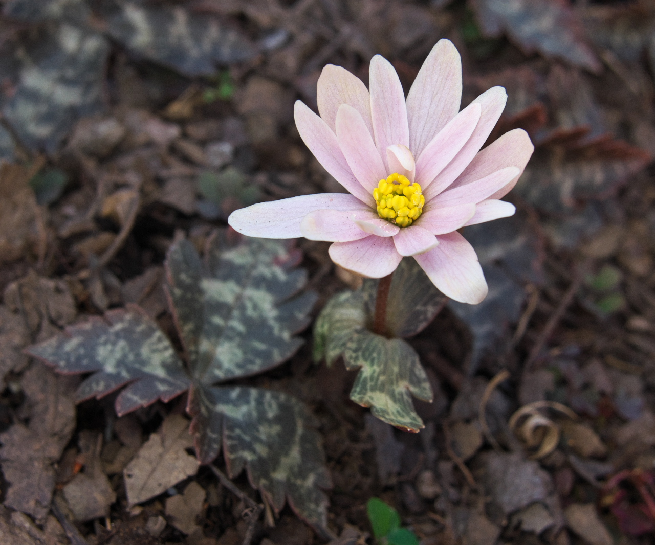 「ユキワリイチゲ」(雪割一華)キンポウゲ科 平成28年 2月17日 晴れ 自然教育園 東京都港区白金台25-21-5 レンズ:90mm相当マクロ 露 出:F4.5 1/160 ISO 200 |