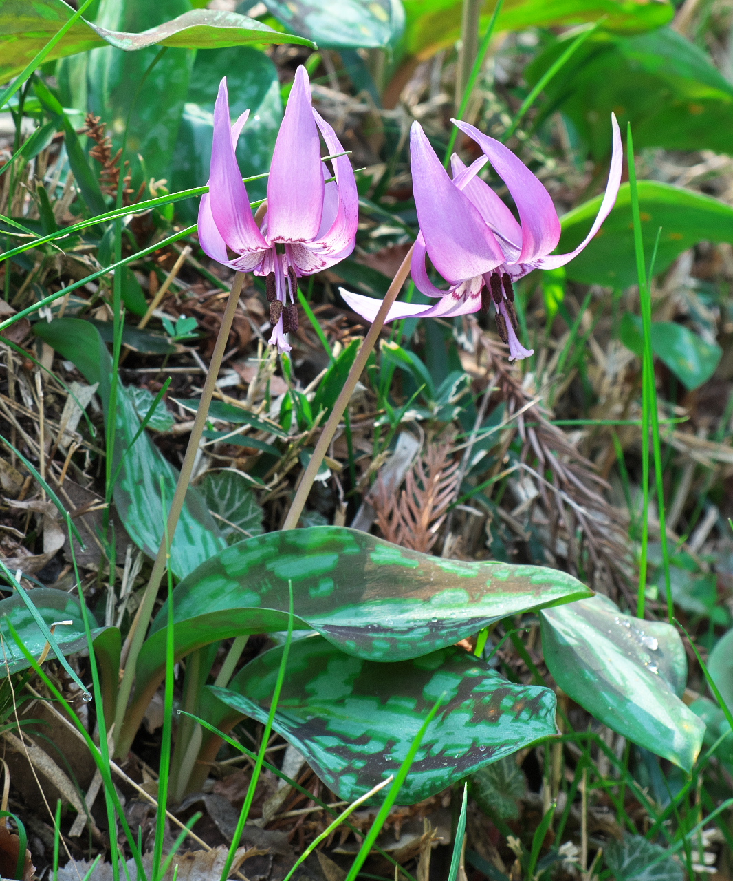 「カタクリ」(片栗 ) ユリ科 令和5年3月27日 くもり 千葉県柏市逆井716,719 レンズ:150mm相当 X VARIO 45-175 /F4.0-5.6 露 出:F 6.3 1/160秒 --0.3EV ISO 200 外付けフラッシュ オート -1EV |